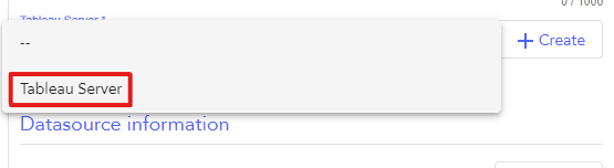 5. Select a Tableau Server (servers created and will be shown to you in the dropdown list)