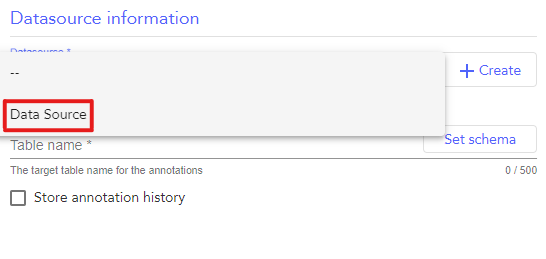 7. Give an arbitrary table name. This table can be later automatically or manually created in the specified data source and will store the annotations